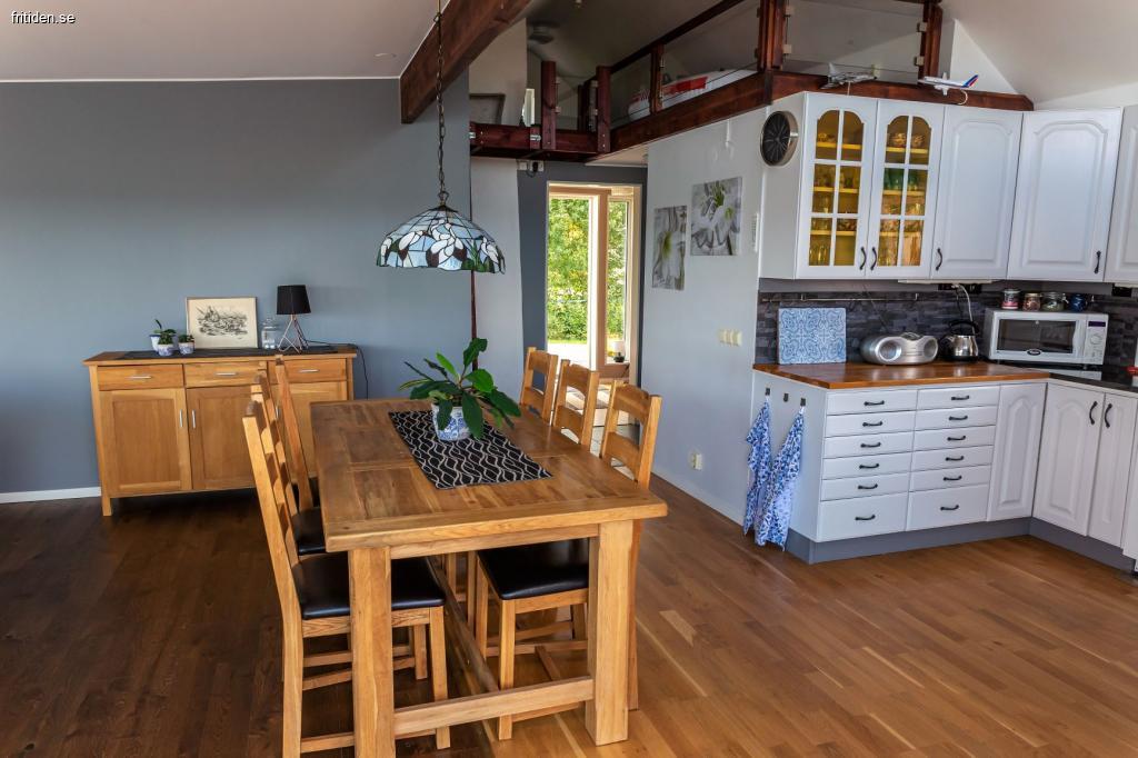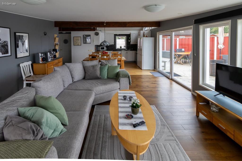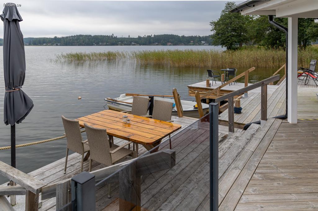 Detta sommarparadis passar för familjegenerationer, är omsorgsfullt inrett med totalt 145 kvm boyta (huvudbyggnad/uterum, gäststuga) inom 5 m från strandlinjen. Sju bäddar för vuxna varav två i Attefallshuset. Finns därutöver bäddmöjligeter för gäster/ungdom på loftet. Planlösningar, interiörkvalitet och husets utrustning se foton, ritningar.