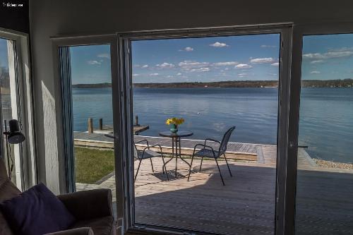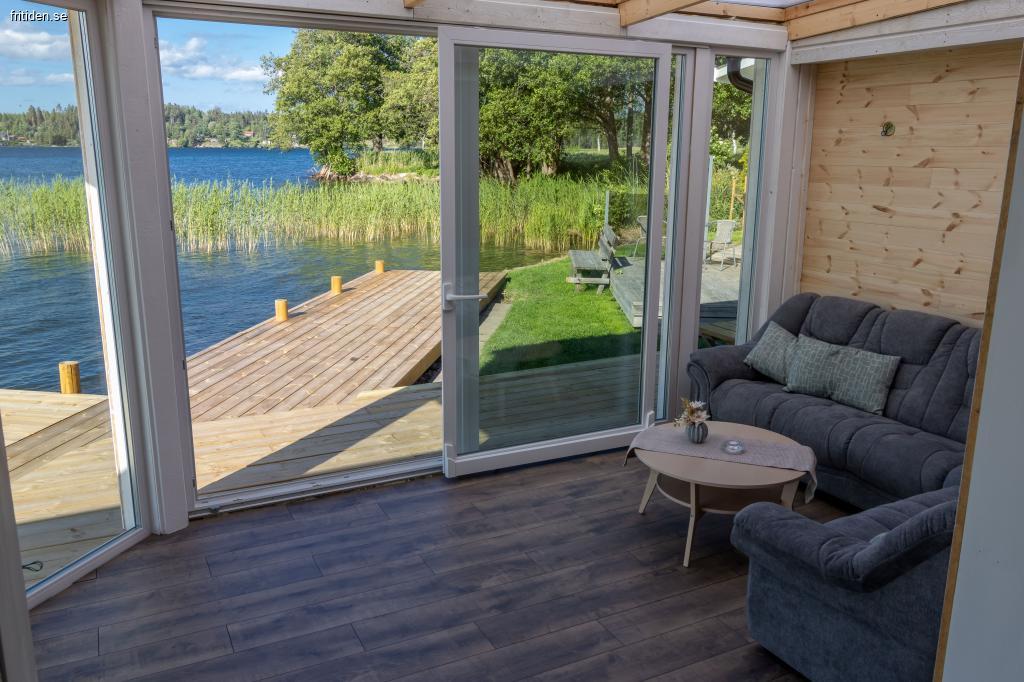 Naturen och Norrbysjön bara någon meter från vardagsrum/uterum och en bekväm badtrappa ner i kristallklart (Vättern) vatten.