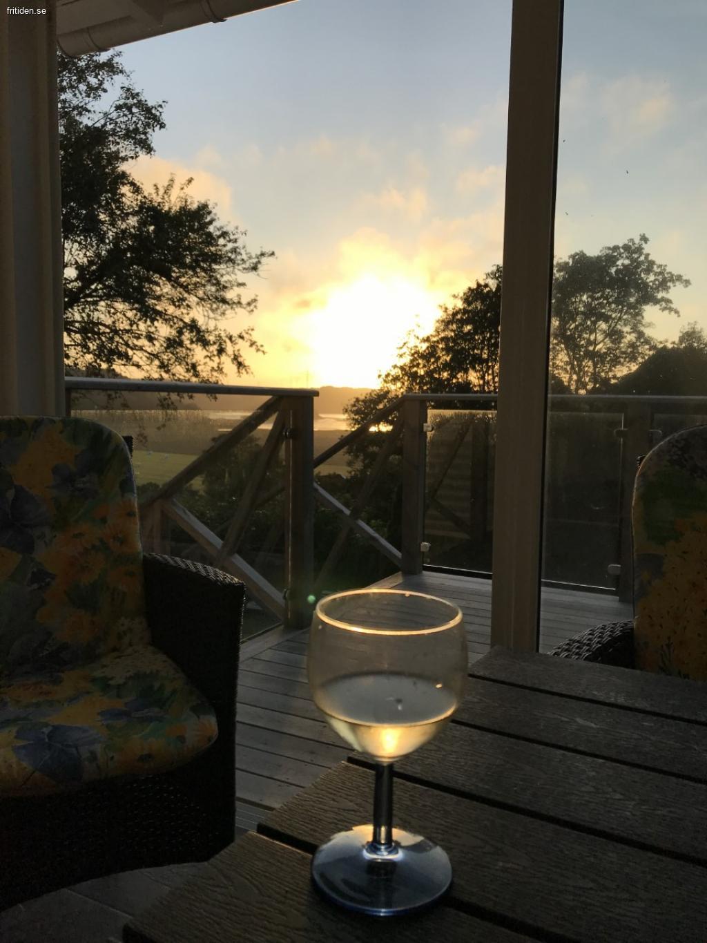 På den inglasade soliga altanen i söderläge finns det öppen spis och sol långt in på kvällen. Det är barnvänligt med trädgård, sandlåda och gräsmatta.