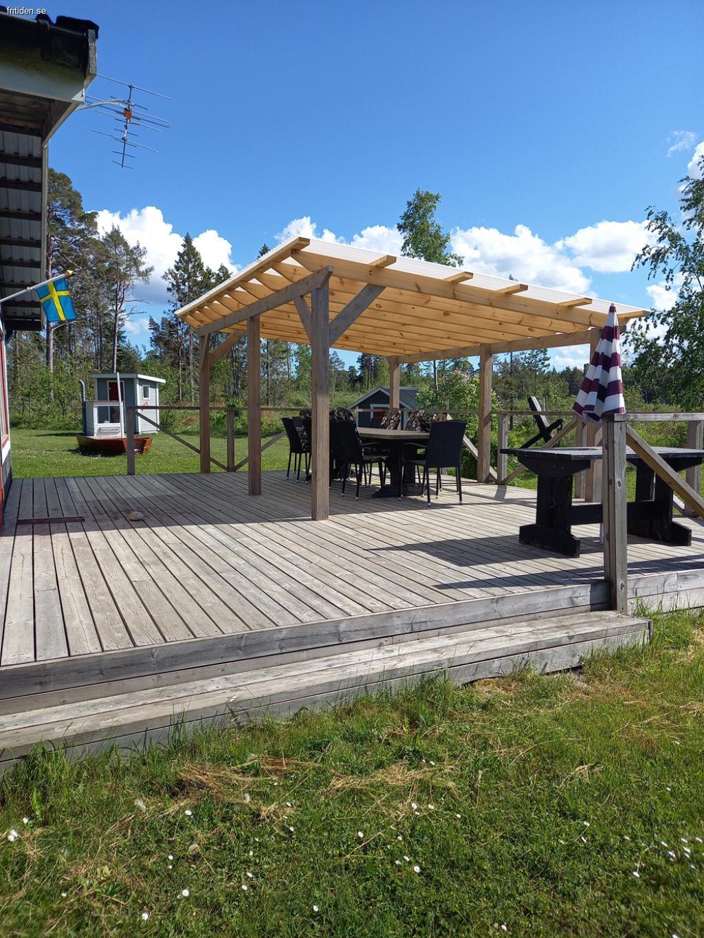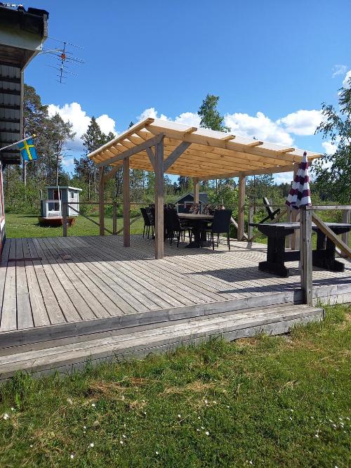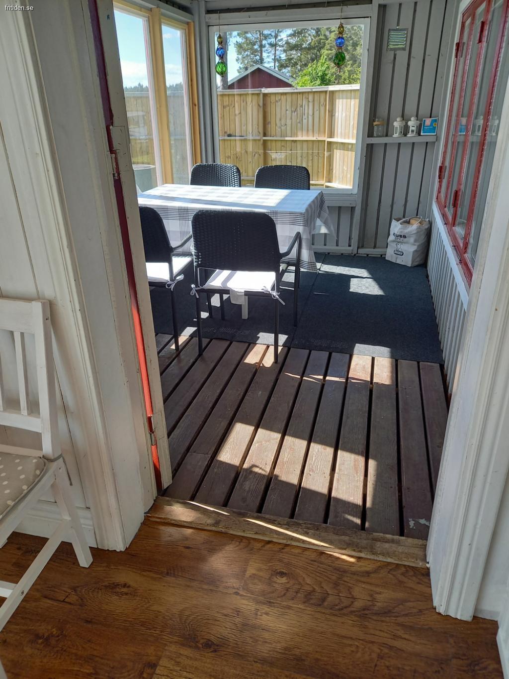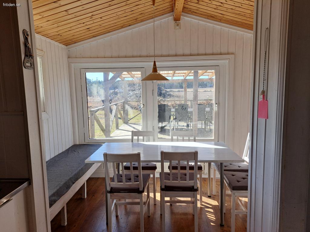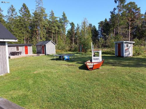 Stor barnvänlig tomt med lekstuga, pysselstuga för barnen där de kan snickra, måla mm.. Spjälsäng och barnmatstol finns. Liten inglasad veranda kan vara skönt om vädret är dåligt. Stor utealtan på 45 kvm. Stora stugan är på ca 75 kvm med 4 bäddar fördelat på två sovrum. En våningssäng och en dubbelsäng. TV rum. Dusch, WC och tvättmaskin. Ett fint torrdass som komplement när man är många.
