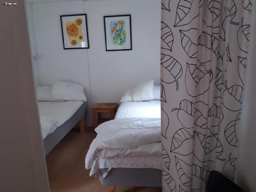 3 små stugor på tomten som går bra att hyra till om man vill. Stuga 1 = 2 sängar. Stuga 2 = 2 sängar samt en våningssäng. Stuga 3 = 2 sängar.