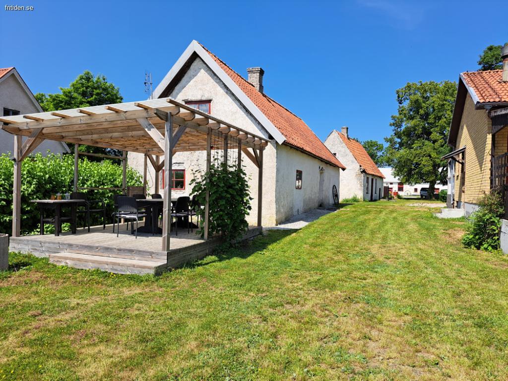 I Rute 13 km från Fårösund ligger denna byggnad på en fd bondgård. Stor tomt med sandlåda, gunga, en lastbilshytt med rutschkana, studsmatta och pysselstuga för barnen. . Ett stenkast härifrån (ca 3 min) gångväg ligger Rute sten ugns bageri med cafe och pizza. 4 km till bad, restaurang med pub. Gotland ring ligger inte långt härifrån. Från trädgårdsmöbeln under pergolan har man fin utsikt över åkrar och äng, där man även kan grilla.