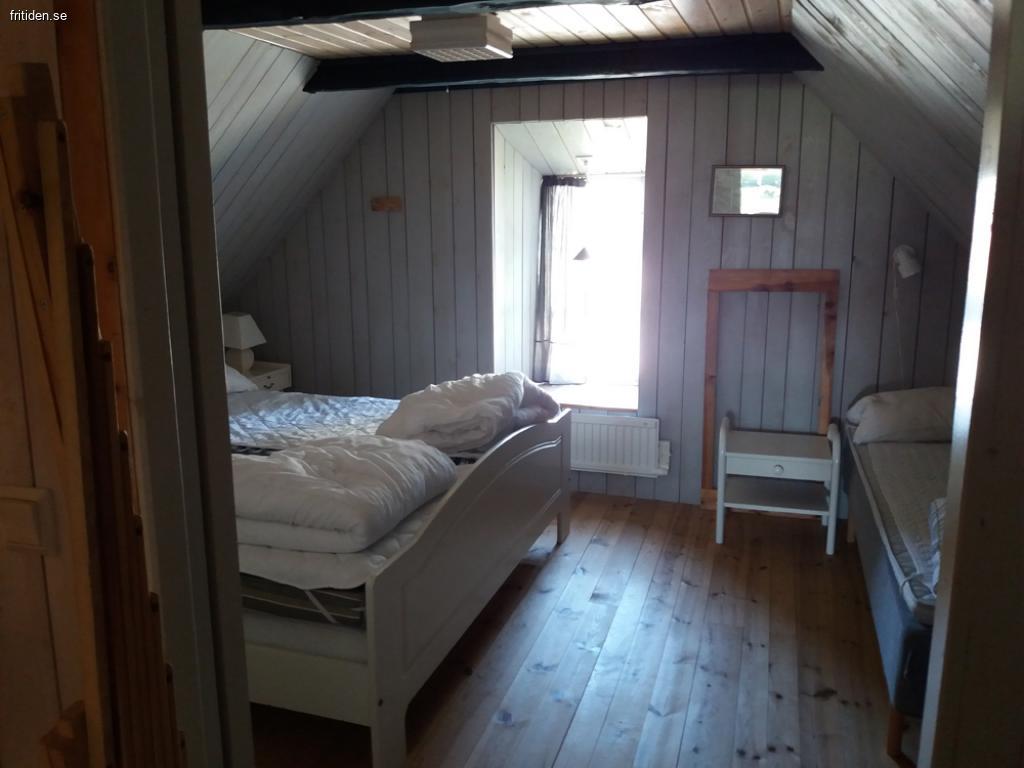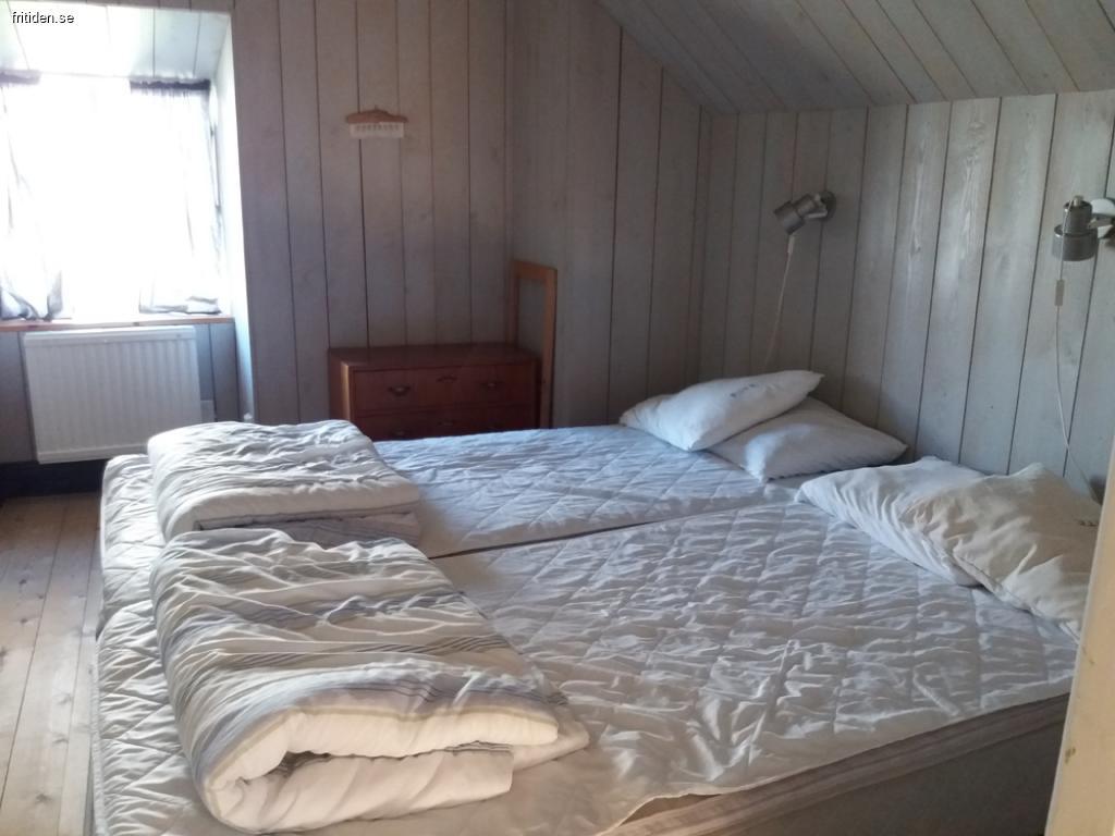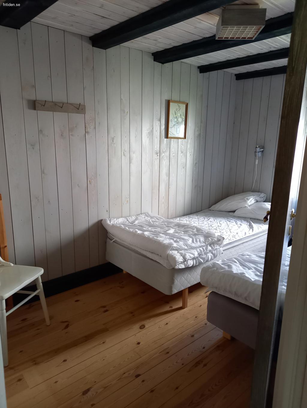 Nedre plan har kök med kyl/liten frys, spis med ugn, micro, brödrost, kaffebryggare, vattenkokare. Badrummet har WC, dusch och tvättmaskin. Ett sovrum med två enkelsängar och det andra har två sängar som står ihop. Spjälsäng och barnmatstol.