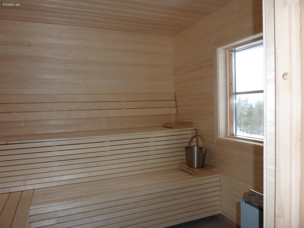 Pingisrum. Stor bastu med fönster och utsikt över fjällvärlden. Omklädningsrum, dusch och toalett i anslutning till bastun.