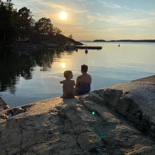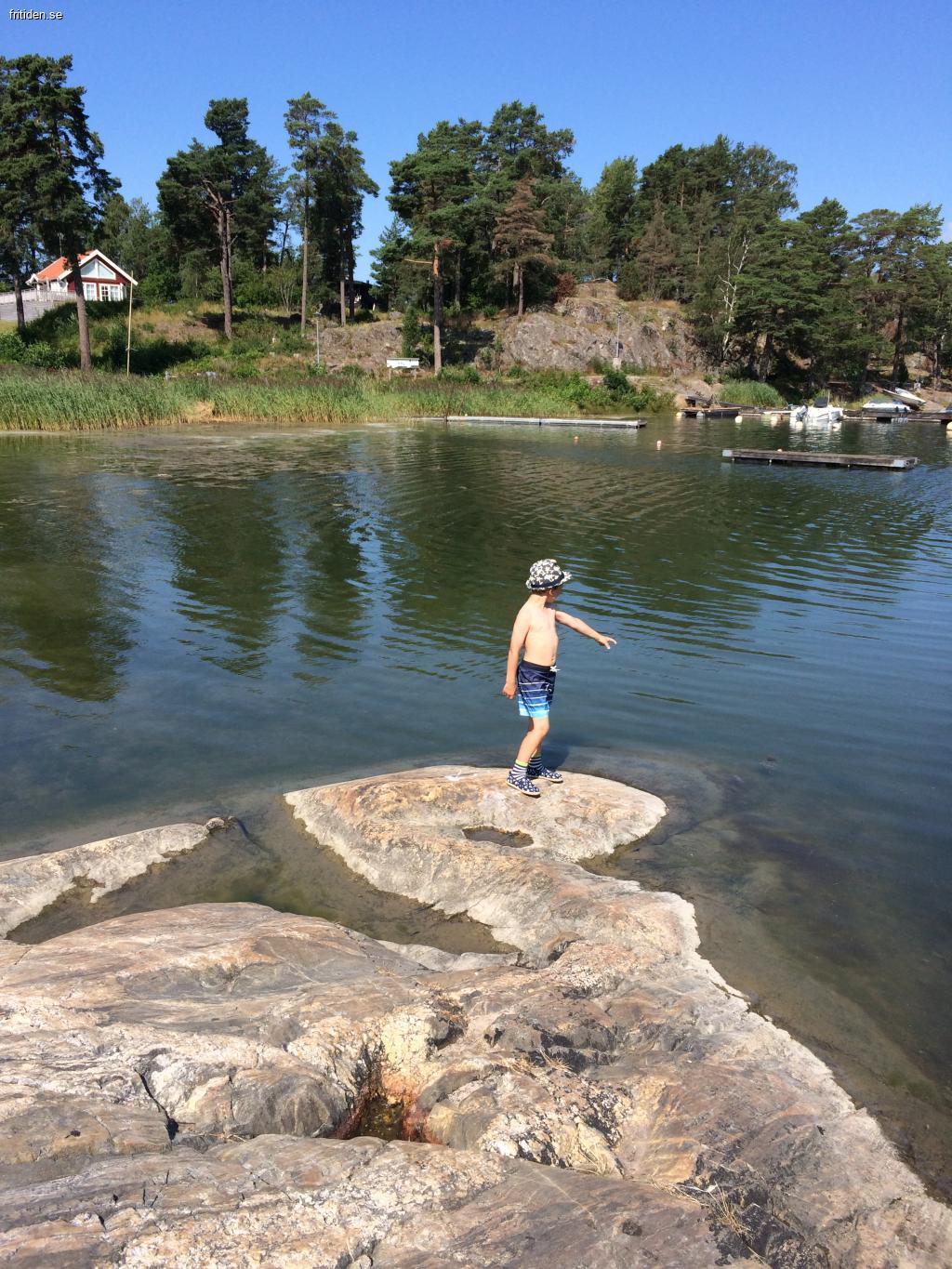 Mysigt skärgårdshus nära Stockholm. Högt beläget, utan insyn och med två altaner. Stor tomt med gräsmatta, cyklar finns att låna.