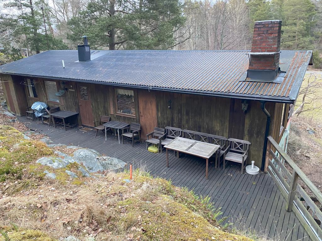 Stugan ligger i ett trevligt stugområde med gemensam fotbollsplan, tennisplan, badklippor och två badplatser med stränder och bryggor (5 respektive 14 min gångväg) varav det på den ena finns en gemensam vedeldad bastu.