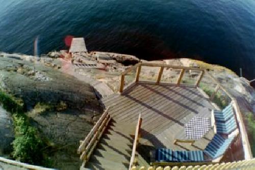 Solaltan, brygga och badstege.