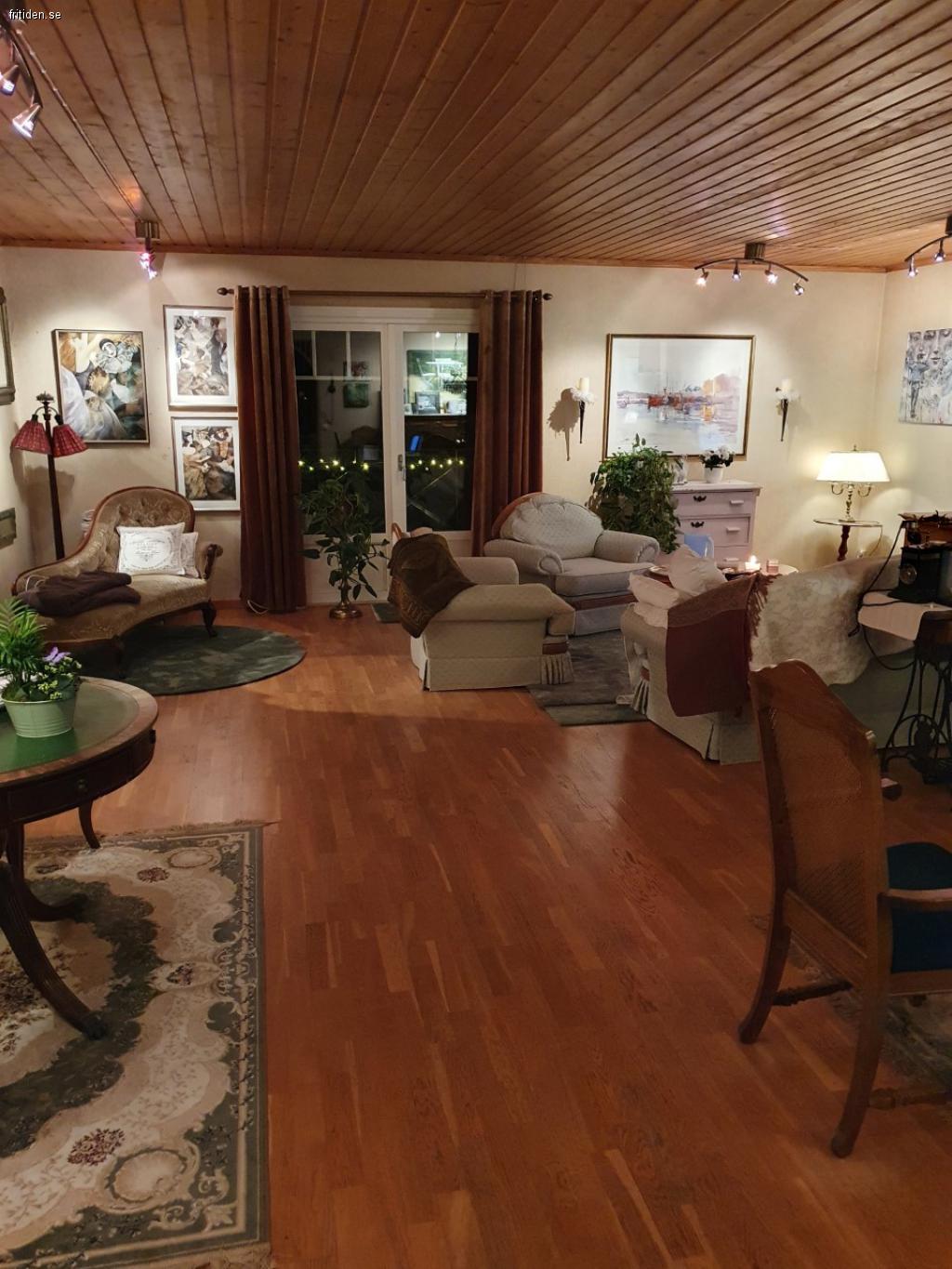 Härliga sällskapsytor. Vardagsrummet är 50 m2 med matsalsdel samt soffgrupp med TV-hörna.