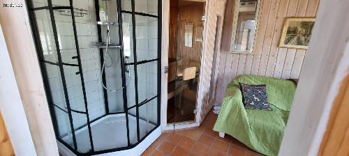 Fin stuga med inglasad altan. Tillgång till mycket. Barnvänligt om man har barn med sig.Fin gäststuga. Vi som var där 6st alla är nöjda.Vi som gilade att bada och sola kunde göra det när som andra fiskade.Bara att kunna göra det på ett och samma ställe är helt underbart.