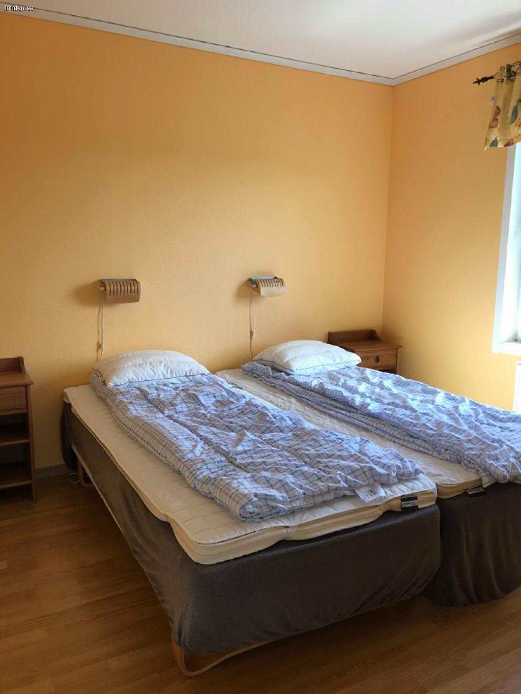 Det finns 3 sovrum med 2 st riktiga resår sängar i varje rum. Det är två lite större sovrum och ett lite mindre.