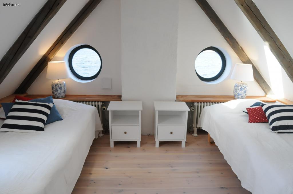 finns 4 sovrum med plats för 2-3 gäster per rum. Samtliga rum har fönster med havsutsikt. På det nedre planet finns det badrum med dusch och en separat tvättstuga, ett stort vardagsrum, kök med gott om plats att äta och umgås i, med utgång till altanen och väg ner till bryggan som har plats för 2 båtar.