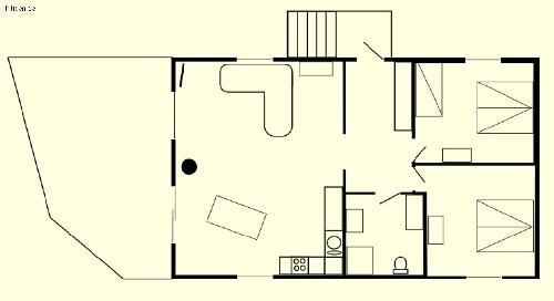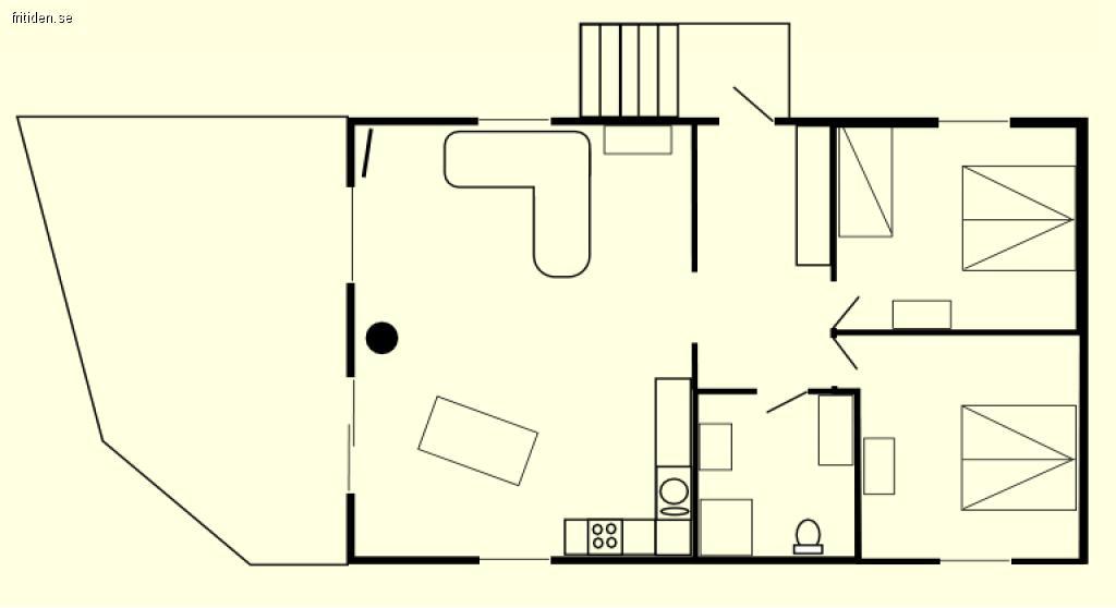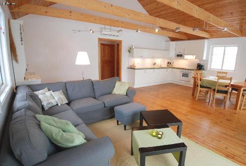 Vardagsrummet med kök och matplats är på 45 m² och till detta kommer två rymliga sovrum på vardera 15 m² samt ett stort badrum och en rymlig hall. I det ena sovrummet finns två sängplatser och i det andra tre. (Även bebissäng finns.) Alla sängar är utrustade med täcken och kuddar.