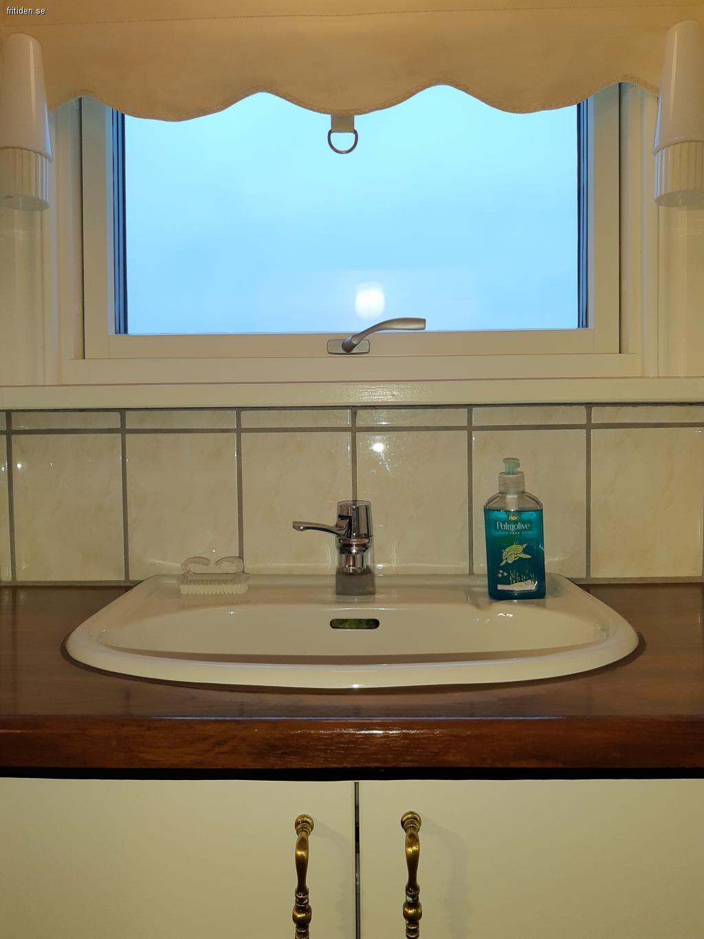 Toalett, dusch och tvättställ.