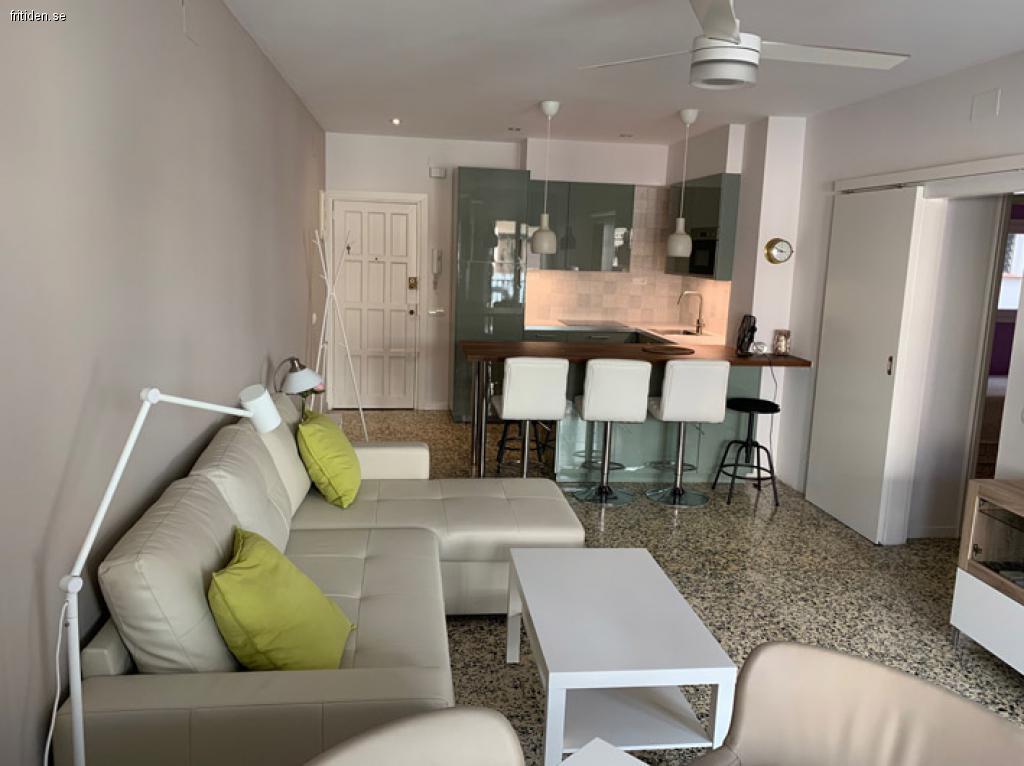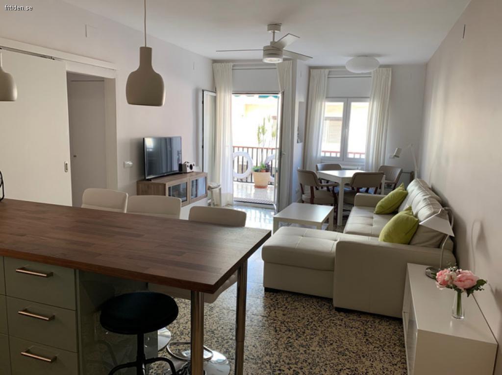 Den är i perfekt centralt läge med all service och har bara 200 meter till tåg och buss. Endast 5 minuters gångväg till stränderna. Lägenheten, på ca 60 kvm, är fullt utrustad och med sovplats för 4-5 personer. Hiss finns. Pris 4500-9000:- per vecka. Då vi är rädda om vår trevliga semesterlägenhet hyrs den endast ut till skötsamma och aktsamma gäster, efter överenskommelse.