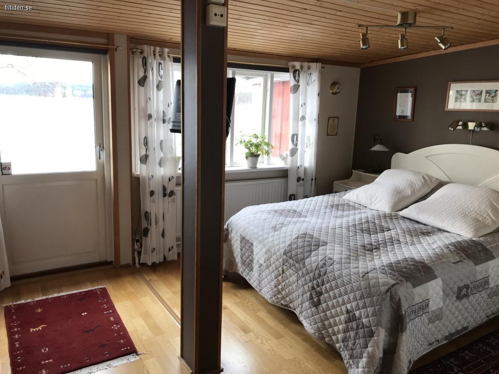 Stor inhägnad trädgård med tre utemöbelsittgrupper, egen brygga och roddbåt. Stor veranda med grill. Kök, ett sovrum med dubbelsäng och en sovalkov med plats för två bäddar i anslutning till TV-rum, vardagsrum, två separata toaletter med dusch, bastu med inglasat uterum och utsikt över sjön, öppen spis, wi-fi.