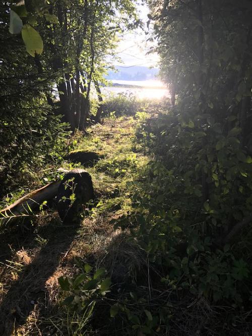 Uteplats med sjöutsikt. Lång stenbrygga.