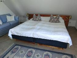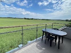 Bo på Österlen i öppet landskap nära havet (2 km) och milslång sandstrand mellan Skillinge och Sandhammarens naturreservat. Del av nybyggt hus. Lägenheten färdigställdes 2006. Den är på ett plan och belägen en trappa upp med stor balkong (10 kvm) och avskildhet. Den vetter åt öst-syd-öst med en fantastisk utsikt, ro och soluppgång. Lägenheten består av Allrum med mycket välutrustad köksavdelning, matplats, TV, bäddsoffa för 2 personer. Separat sovrum med dubbelsäng, garderob och liten soffa Helkaklat badrum med badkar, dusch i badkaret. Samtliga golv med klinkers och golvvärme. Gratis Wi-Fi Lägenheten gränsar till en annan lägenhet (nr 3 på hemsidan) som man kan kombinera med och hyra hela eller del av om man är många eller 2 familjer. Tvättmaskin och torktumlare finns på bottenvången och kan lånas mot en avgift. Normal förbrukning av hushållsel samt värme ingår i hyran. Det finns många sittgrupper att välja på i trädgården samt i den lilla parken. Damm med fiskar, vilken ej är inhägnad. Gung-/och klätterställning finns i trädgården. Fler bilder och hyresvillkor finns på hemsida www.sandby.se Borrby 4 km. Simrishamn 20 km. Ystad 24 km. Detta objekt har dessa bekvämligheter:
