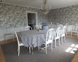 Huset ligger på ett högt berg med utsikt mot sjön. Här kan ni ha familjeträffar och och laga god god mat och umgås i fin herrgårdsmiljö. Det går bra att bara hyra en weekend för 8000 kr eller söndag till fredag för 8000 kr. Matsalen har plats för 14 personer och det finns möjlighet att hyra extra gästrum på gården. Vid nyttjande av poolen tillkommer en avgift på 2 000 kr. Poolen är öppen från juni-aug. Utsikten och läget är bedårande. Ni kan ta långa promenader och bada vid ett privat badberg. Vi kan även tipsa om bra catering och roliga aktiviteter för er. Det finns 4 dubbelrum, 2 badrum och möjlighet till max 2 extrabäddar för barn. Under perioden 15 april till 8 oktober är huset bokad av våra bröllopspar på helgerna men det går bra att hyra söndag till fredag. Vecka 27 är dock helt ledig. Är ni ett större sällskap >30 personer har vi ett ytterligare stort hus på gården (se Rättarbostaden) Detta objekt har dessa bekvämligheter: