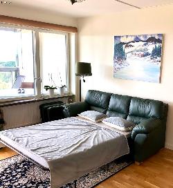 Upplev fantastiska Visby, alla tider på året bara 4 km promenadväg utmed havet till eller ta "kärleksstigen" genom strandskogen. Modern lägenhet med nya möbler i Gotlands högsta hus på 12 våningen. Två snabbhissar med modern säkerhetslösning - så du kan åka tryggt. Panoramautsikt över hela Visby och Östersjön. Bjuder oftast på fantastiska solnedgångar. 2 rum med walk-in-garderob, badrum, vardagsrum med bardisk mot köksdelen. Inglasad terass för året runt bruk på 20 m2. Plats för 2 vuxna och 2 barn. I sovrummet har vi en ny exklusiv dubbelsäng med Woolbed madrass, 180 cm bred. I vardagsrummet finns en ny bäddsoffa med plats för två mindre barn eller en vuxen. Vid behov kan vi ta in en uppfällbar säng med bra madrasser för ett mindre tillägg. TV-QLED och bredband ingår. Fri P-plats. Närhet till havsbad. Vi tar ut en depositionsavgift på 1000 kr i samband med ankomsten för nycklar och städning. Vi kan även erbjuda: Cyklar för 250 kr/styck/vecka. Enkel frukost eller kvällsmat i kylen när du kommer 2,5 km till närmaste matbutik. 2 km från Visby flygplats och Gotska Golfklubben och 5 km till Lugnets Golfbana. Upptäck Gotland på cykel eller med bil. 250 meter till väg 149, Lummelundsväg som passerar många av Gotlands sevärdheter, med cykelbana till stan och norrut mot Krusmyntagården och Lummelunda grottorna. Vidare norrut till Gotlands högsta rauk "Jungfrun" i Lickershamn där lokala fiskare säljer nyfångad rökt fisk. Fortsätt norrut till Ihre gård, följ norra kusten mot Bungenäs och bada i Blå lagunen och fortsätt sedan till Fårösund och Fårö. > Vi värnar fastighetens trivsamma grannsämja och hyr därför endast ut till lugna och skötsamma gäster. Ingen rökning, inga husdjur och inga fester. - För en trivsam samvaro för oss alla. Detta objekt har dessa bekvämligheter: