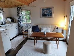 Charmig och fräsch liten stuga, i Brissund en mil norr om Visby uthyres veckovis under sommaren. Huset ligger på en stor ogenerad naturtomt med fantastisk havsutsikt. Stugan har ca 30 välplanerade och ljusa kvadratmeter med sovrum, vardagsrum/köksdel och duschrum med förbränningstoalett. Lämpligt boende för 2 vuxna eller den lilla familjen med ett barn. Familjesäng, 80+120 cm och möjlighet till extrasäng i sovrummet. I vardagsrummet finns bäddsoffa (105 cm bred) och TV, radio, CD-spelare. Köksdel med plattor, kyl/frys, diskho, micro och bra köksutrustning. Barnstol finns. WC är en förbränningstoalett. Uteplats med grill och hängmatta. Gångavstånd till stränder och till Krusmyntagården, samt 3 km till Lummelundagrottan. Inget fiber, men mobilnät fungerar. Bytesdag söndag. Stugan är med i fritiden-filmen "Upplev Gotland", se nedan. Detta objekt har dessa bekvämligheter: