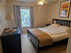 Hyr vårt radhus i Orlando, Florida, på din nästa semester. Huset ligger i ett så kallat Gated Community. Ett tryggt område med vakt dygnet runt. I området finns det gemensam pool, tennisbana, halv basketplan, beachvolleyplan, pingisbord, liten minigolf bana och en liten klätterställning för de minsta. Klubbhus med gym, bastu (om ni skulle bli lite kalla) samlingslokal och spelrum. Klubbhuset är bemannat varje dag 8-22. De hjälper gärna till om ni har frågor om biljetter, golf och annat i Florida. Vid poolen finns det en bar som serverar lättare luncher och snacks (hamburgare, nachos) samt självklart svalkande drycker. Huset har tre sovrum på övervåningen. Två sovrum med två sängar i vardera rum samt ett sovrum med en dubbelsäng. Självklart finns det en babysäng också. På nedervåningen finns det ett fullt utrustat kök med frukostbar och matplats i anslutning till vardagsrummet. Tvättstuga med tvättmaskin och torktumlare. Från vardagsrummet så kommer man ut på baksidans uteplats. Där hittar man solstolar och matbord. Tv finns vid soffan i vardagsrummet. Hela huset är luftkonditionerat. WiFi ingår i huset och man kan även koppla upp sig i klubbhuset. Området ligger ca 40 minuters bilväg från Orlando International Airport (MCO). Inom 20-30 minuter hittar ni Disney, Universal, Sea World mm. 5-10 minuter finns Walmart och Target (typ ICA Maxi på steroider). Mängder av olika restauranger och shopping finns inom 5-30 minuter. Till stranden tar det ca 1,5 - 2 timmar, antingen väster- eller österut. Slutstädning, handdukar och lakan ingår i hyran. Självklart tillgång till hela resorten. $25 tillkommer för ett passerkort för huvudgrinden. Inga andra avgifter tillkommer. Kalendern är inte uppdaterad. Skicka oss ett meddelande för att höra om huset är ledigt. Se vår hemsida för ytterligare information och bilder. www.orlandovacation.se Detta objekt har dessa bekvämligheter: