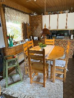Mysigt skärgårdshus nära Stockholm. Högt beläget, utan insyn och med två altaner. Stor tomt med gräsmatta, cyklar finns att låna. Huset har 3 sovrum med 2 bäddar i varje och ett större rum med barkök, öppen spis och bäddsoffa. Dusch och wc finns. Stugan ligger i ett trevligt stugområde med gemensam fotbollsplan, tennisplan, badklippor och två badplatser med stränder och bryggor (5 respektive 14 min gångväg) varav det på den ena finns en gemensam vedeldad bastu. Till/från Stockholm tar det 50 min med bil. Busshållplats med regelbundna bussförbindelser till Nynäshamn (med pendeltåg och färjor till Ventspils, Gdansk, och Visby) finns 2 km bort. Detta objekt har dessa bekvämligheter: