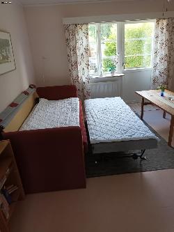 6 ELLER 10 Bäddar med extrarum. Kan hyras enstaka nätter. Gammal fiskestuga i underbara Skärså fiskeläge i Söderhamn. 40 cm till grannen som man byggde på 1800 talet 6 bäddar i stugan och ytterligare 4 bäddar i uthuset på andra sidan vägen att hyra till för 150 kr natten. Låg takhöjd på övervåningen med dubbelsäng , en fäbosäng som är lite kort då den har stått där sedan huset byggdes samt en bäddfåtölj som passar barn/ungdomar. Två sängplatser nere i vardagsrummet i bäddsoffa. Litet mysigt kök med full utrustning, till säsongen 2022 har vi bytt ut den gamla spisen till en induktionshäll istället samt en fullstor ugn. TV med basutbud. Trädgårdsmöbler på framsidan där det är massor med folk sommartid och på baksidan där ni får vara för er själva. Klotgrill finns. Lungt o mysigt även på vintern. Tvättmaskin och torktumlare i källaren. Bara 100 meter till Albertina (sommaröppen) fiskrestaurang där du äter läckerheter med vattnet under fötterna. Förbrukningsmaterial håller ni med själv. Slutstäd görs av gästerna själva enligt checklista. Kan finnas möjlighet till köpa slutstäd vid vissa tillfällen. Skicka en förfrågan om ledighet då enstaka dagar inte går att markera i annonsen. Titta på www.skarsa.rutinkonsult.se/ på webben så hittar du mera bilder från Skärså. Webbkamera online ca 200 m från stugan på http://www.webbkameror.se/webbkameror/soderhamn/soderhamn_2_640.php7 och Skärså AIK på http:/www.skarsa.se För karta, gå in på www.eniro.se välj kartor, skriv in Skärså 420 klicka på sök. Där kan du även få flygfoto om du vill. Lakan kan ordnas om du inte skulle ha med dig, ring o meddela i så fall. Bokning kan ske med mycket kort varsel. Elbilsladdning finns mot avgift. Detta objekt har dessa bekvämligheter:
