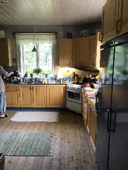 Stort kök med öppen spis kyl, frys diskmaskin ugn. Två toaletter. Två duschar. Tvättstuga.